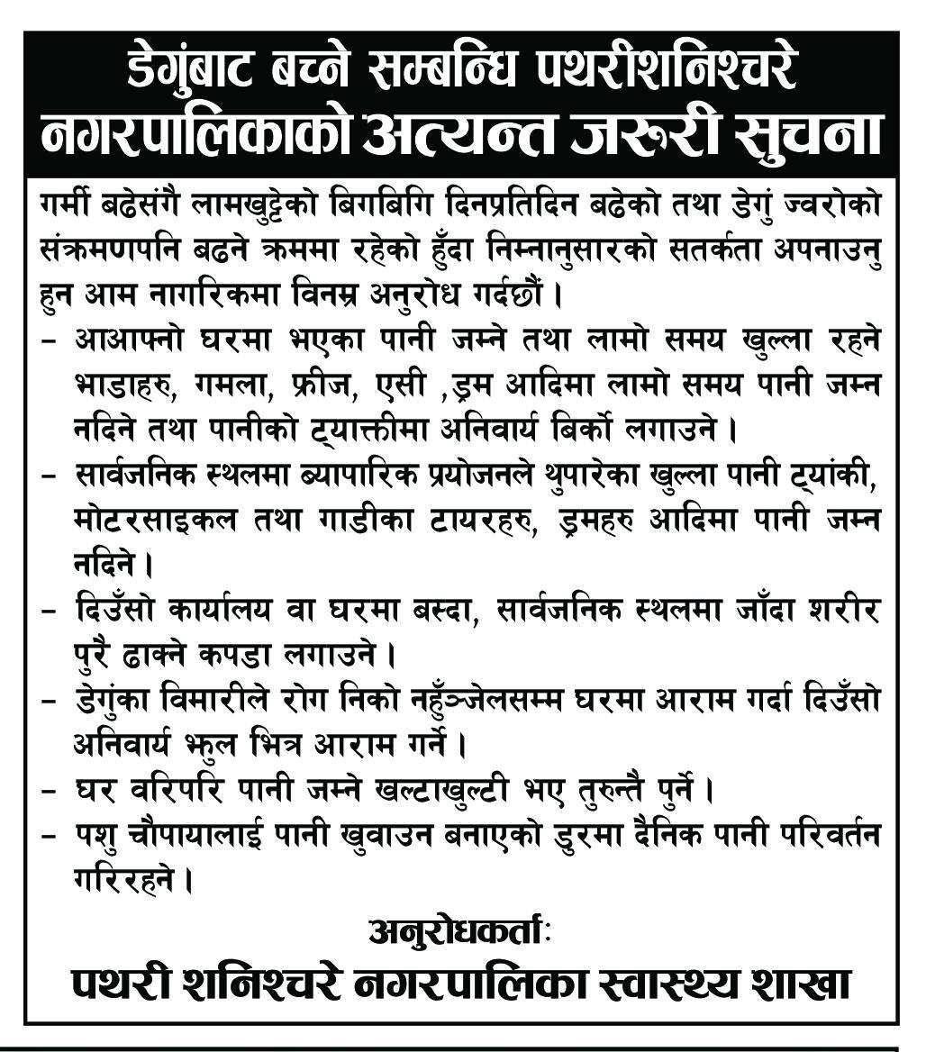 पथरी, १३ पुस । प्रदेश र संघीय सरकारलाई पटक–पटक माग पत्र बुझाउँदा पनि कुनै चासो नदिइएपछि मोरङको पथरीशनिश्चरे नगरपालिका–८ का स्थानीयवासीले आफ्नै पहलमा दुई स्थानमा […]
